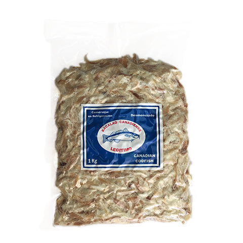 1 kg de auténtico bacalao canadiense desmenuzado empacada al vacío de excelente calidad